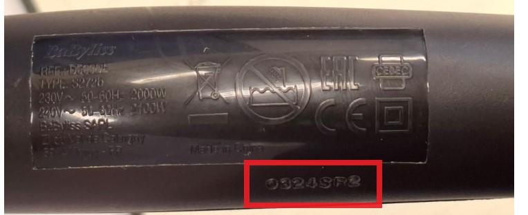 Utvrđeno je da navedeni proizvod, sa serijskim kodom 0324SR2, ne ispunjava propisane zahteve. Imajući u vidu navedeno, ovim putem pozivamo sve potrošače i druge korisnike, koji su u prethodnom periodu od nas kupili Babyliss fen za kosu model D563DE, da provere njegov serijski kod koji se nalazi na dršci uređaja.