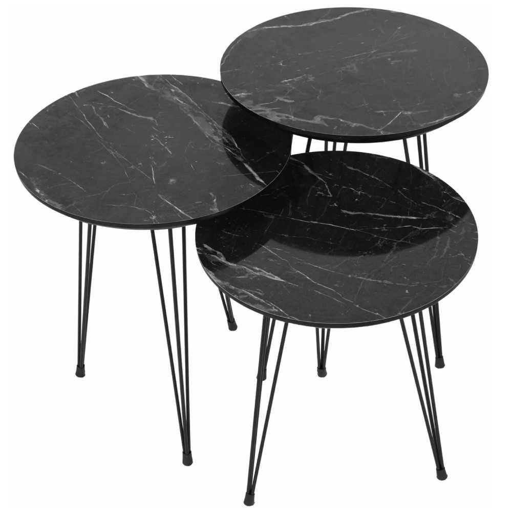 ASIR GROUP Siyah Mermer Set 3 klub stola